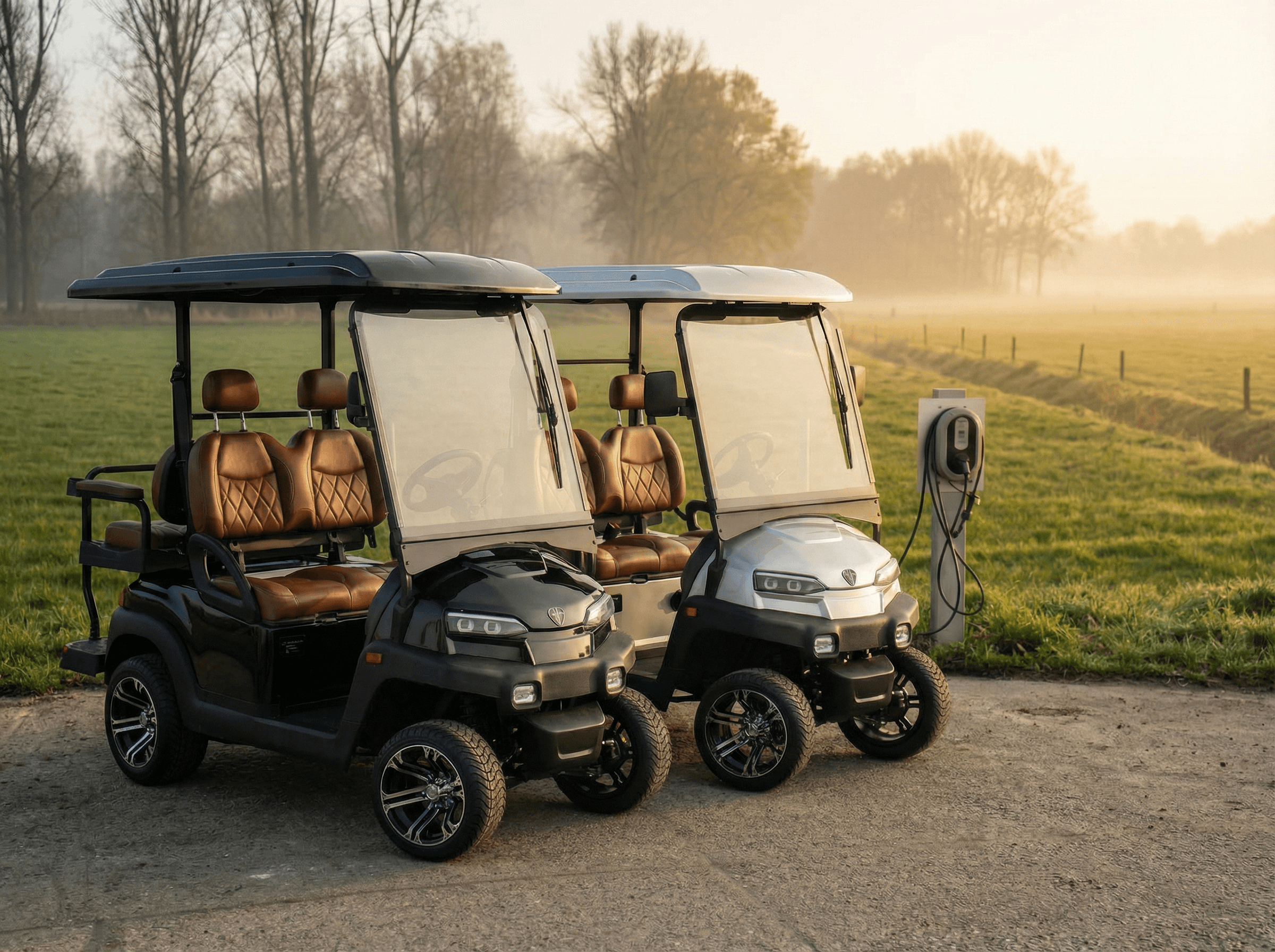 Onze golfkarren hebben een rijbereik van ongeveer 60 km op een